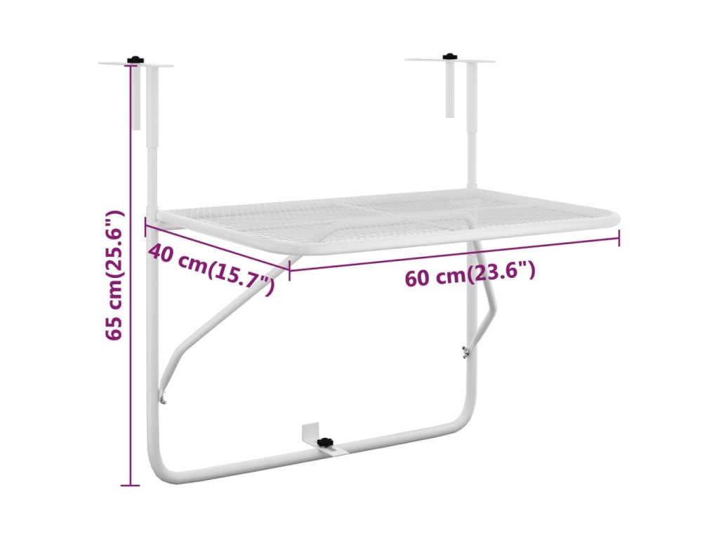 Balkonový stolek bílý 60 x 40 cm ocel 340916