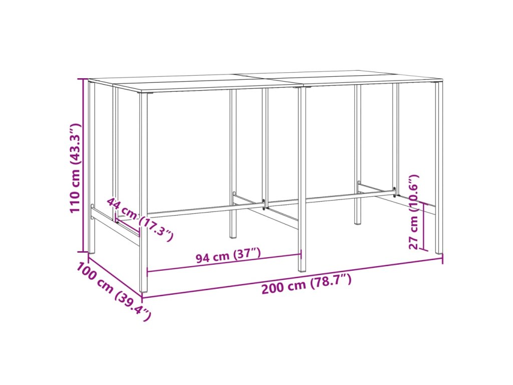 Barový stůl černý 200 x 100 x 110 cm práškově lakovaná ocel 3301419