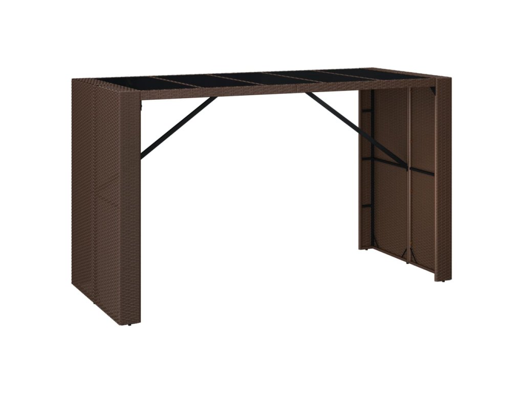 Barový stůl se skleněnou deskou hnědý 185x80x110 cm polyratan 362599