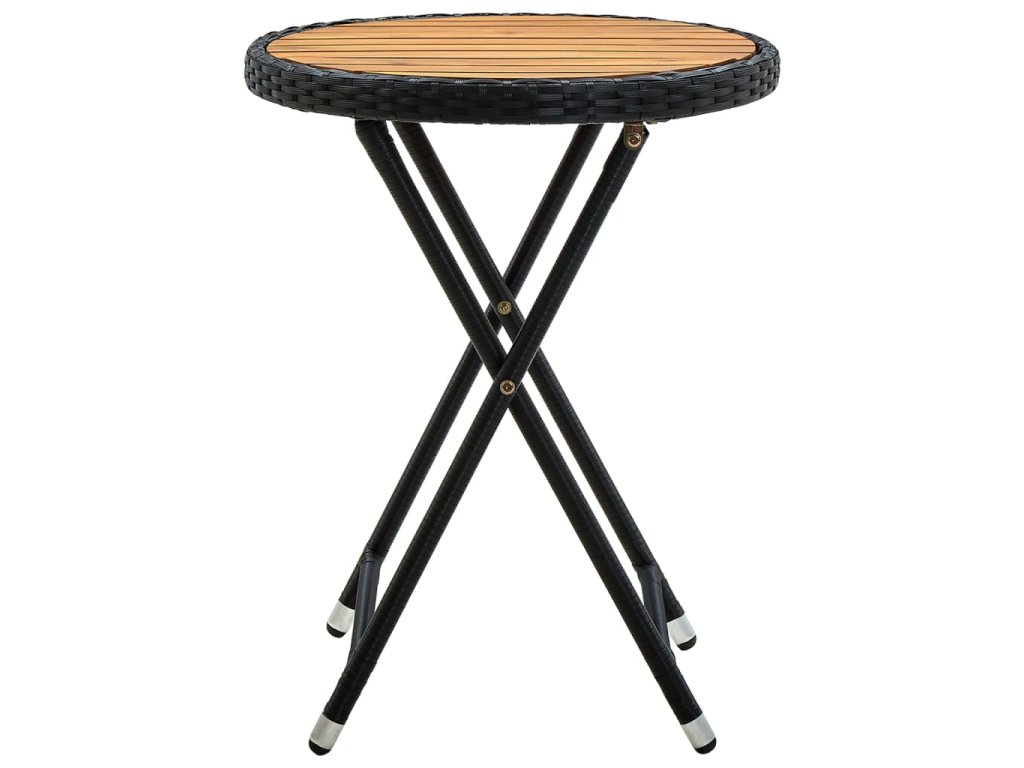 Ocelový rám s práškovým nástřikem je pokrytý klimaticky odolným PE ratanem s ochranou proti UV záření, proto vám tento stolek poskytne dlouhé roky spokojeného venkovního používání. Stolní deska je vyrobená z masivního akáciového dřeva, které je robustní a má dlouhou životnost. Pokud právě zahradní stolek nepoužíváte, můžete ho snadno sklopit a ušetřit tak místo.