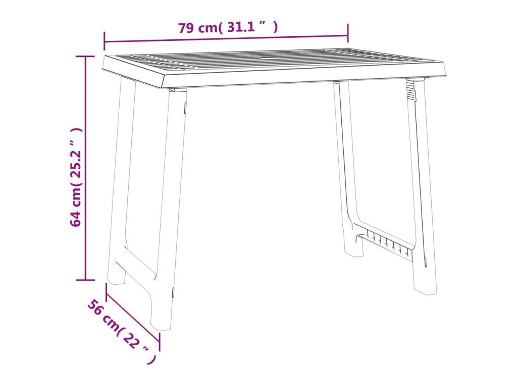 Kempingový stůl bílý 79 x 56 x 64 cm PP vzhled dřeva 364737
