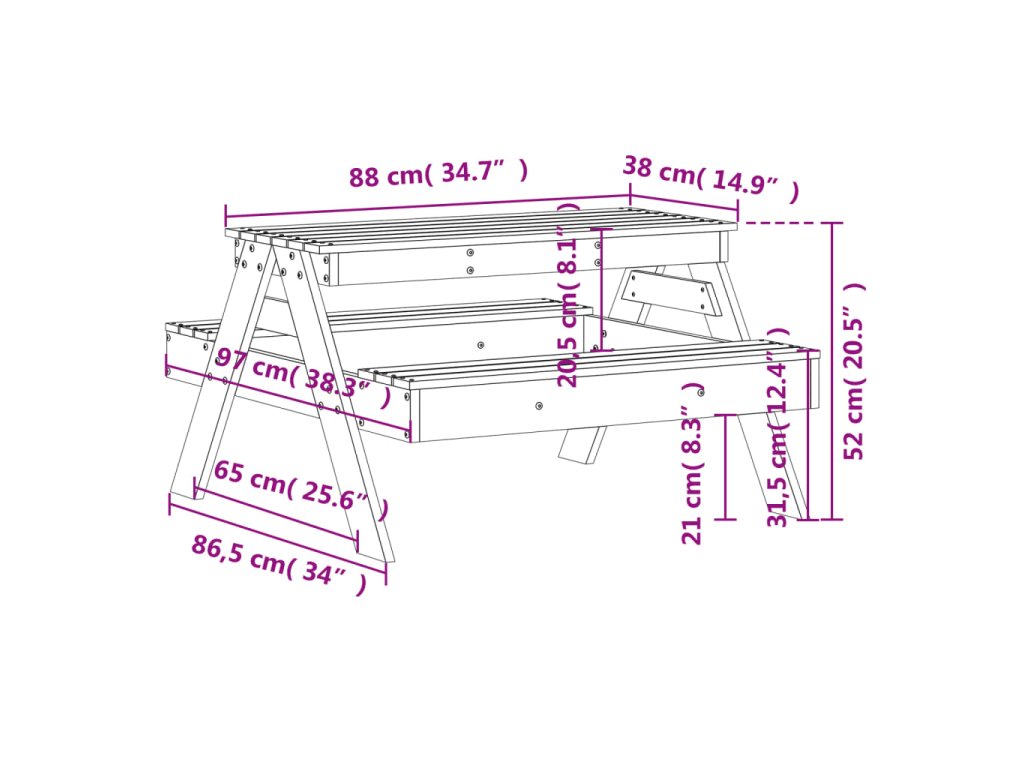 Piknikový stůl pro děti 88 x 97 x 52 cm masivní dřevo douglasky 832599