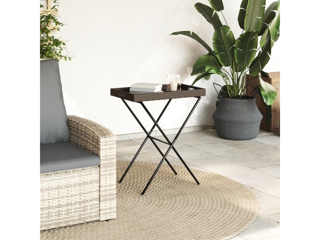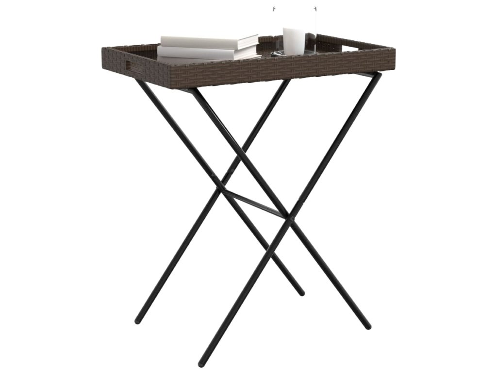 Skládací stůl s podnosem hnědý 65 x 40 x 75 cm polyratan 365128