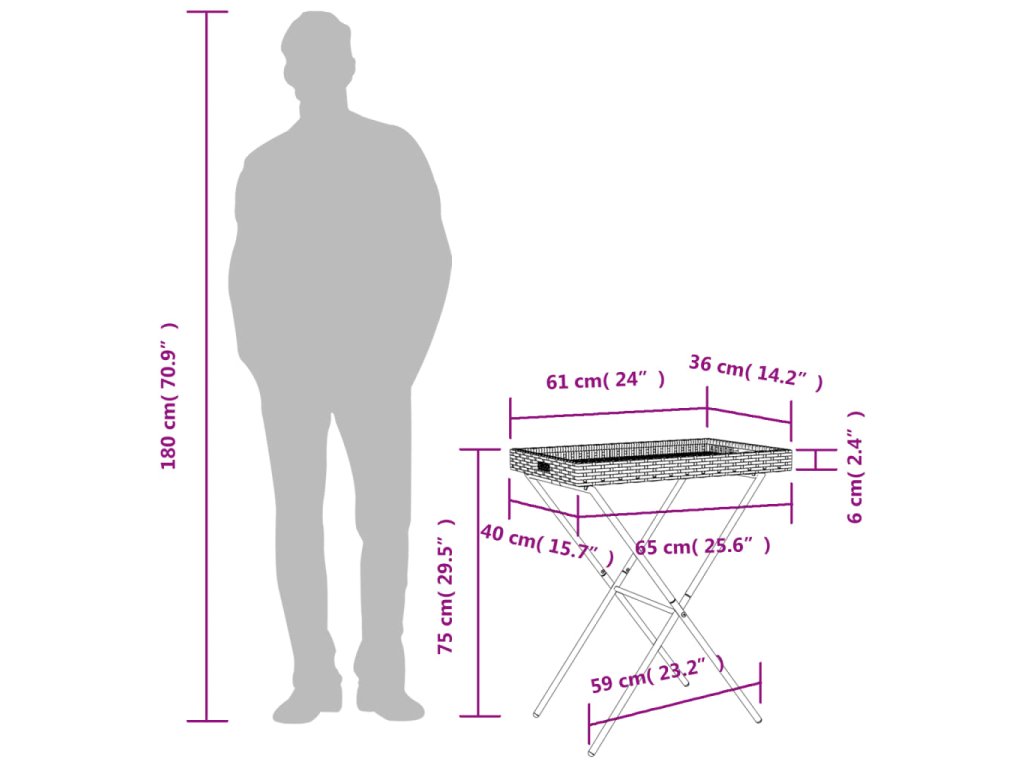Tento klasický polyratanový stolek s podnosem je navržen s čistými a jednoduchými liniemi a bude skvělou volbou pro vaši zahradu, terasu a další venkovní prostory.