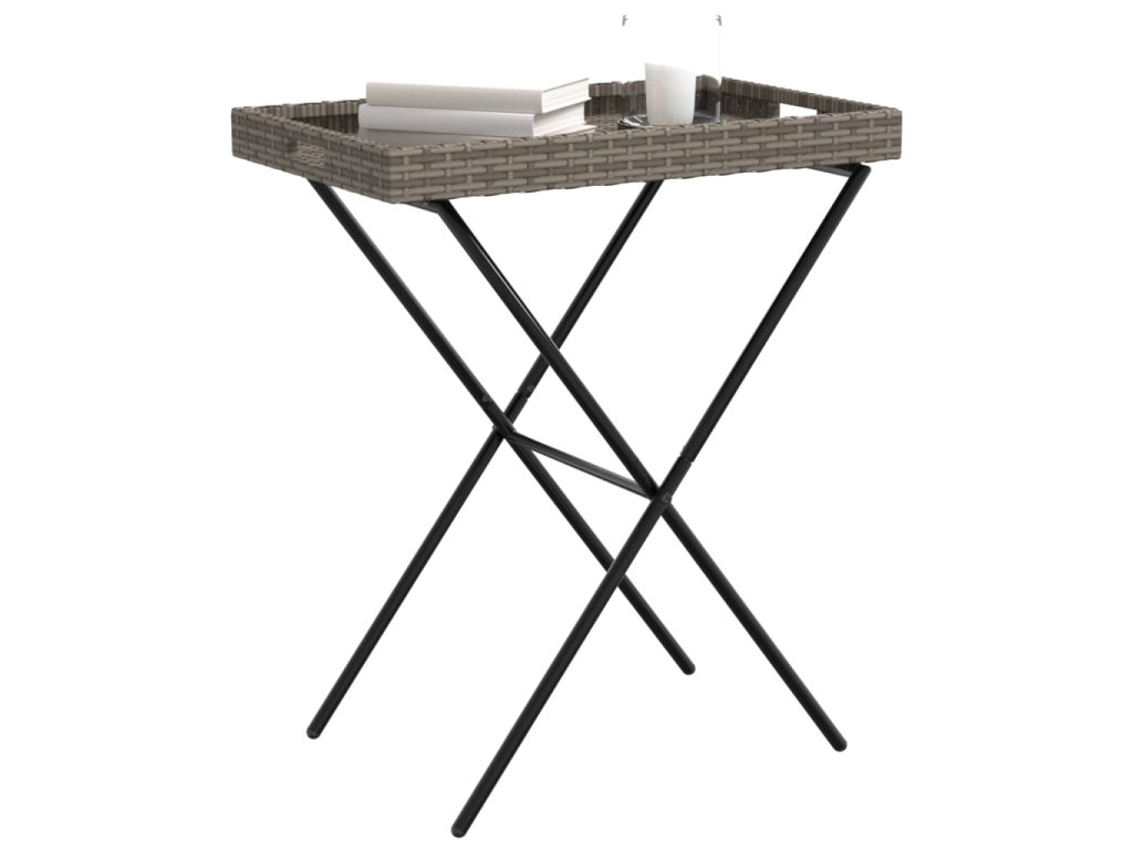 Skládací stůl s podnosem šedý 65 x 40 x 75 cm polyratan 365129