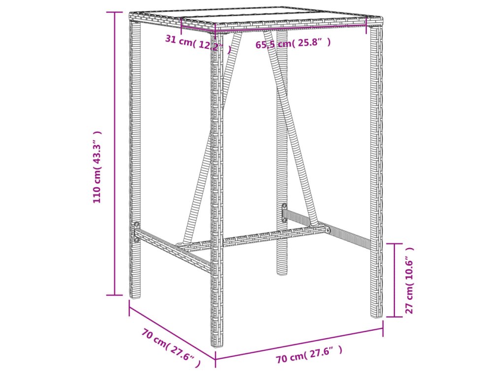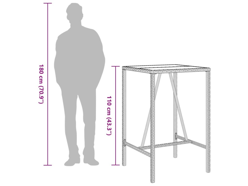 Zahradní barový stůl hnědý 70 x 70 x 110 cm polyratan 368694