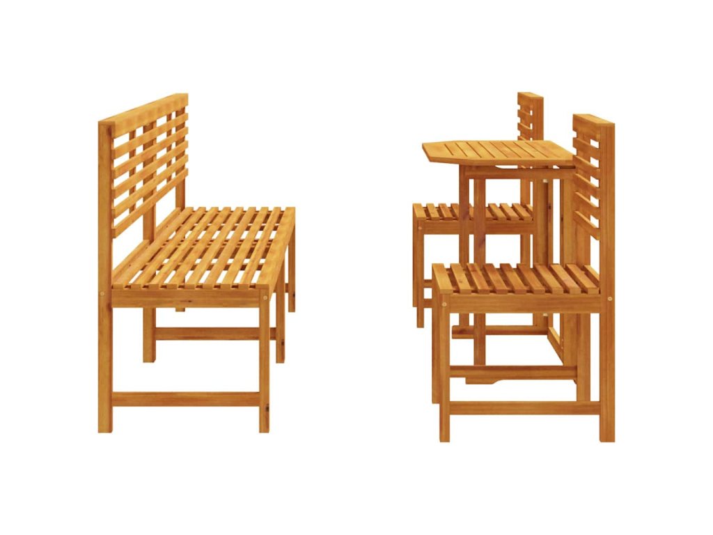 - Super materiál: Set je vyroben ze 100% masivního akáciového dřeva, což z něj dělá kvalitní výrobek, který vydrží. Je odolný proti počasí a vypadá parádně. Díky přirozené odolnosti proti slunečnímu záření je ideální pro každou zahradu nebo terasu.