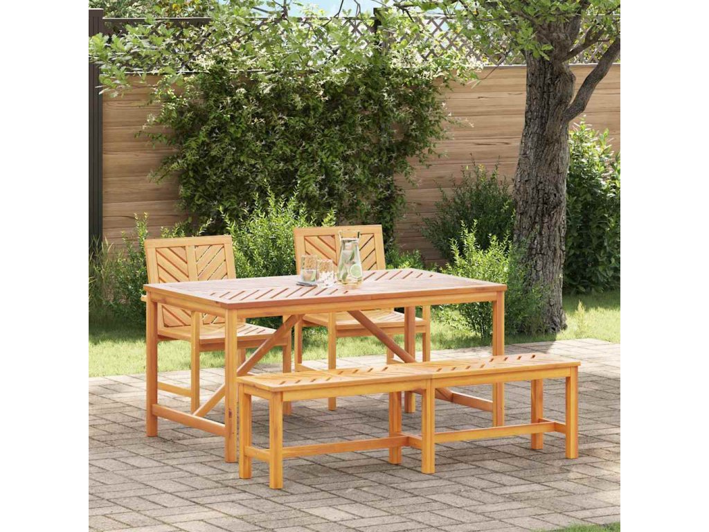 Zahradní jídelní set z akáciového dřeva nabízí skvělou kombinaci funkce a prvotřídního stylu pro tvůj venkovní život. S minimalistickým nádechem předvádí čisté linie a přírodní kouzlo masivního akáciového dřeva, který se perfektně hodí do různých zahradních prostředí. Je ideální pro malé, intimní večeře a vytváří pěkný středobod ve tvé zahradě nebo na terase – ideální pro relaxované večery nebo klidné chvíle.