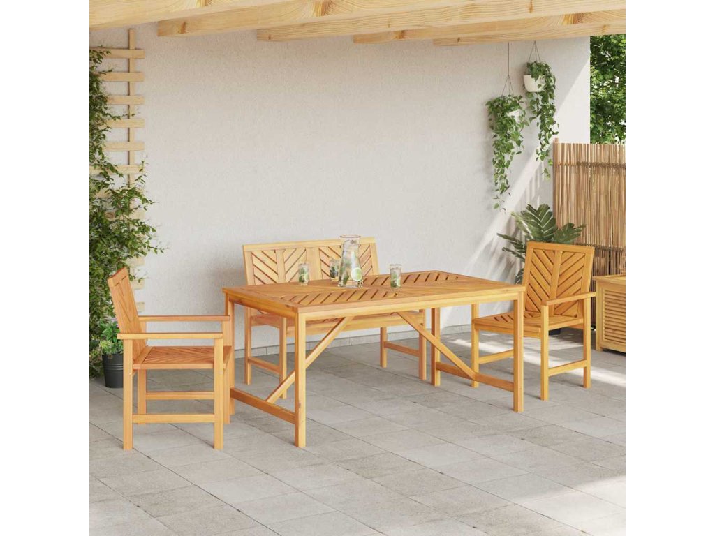 Zahradní jídelní set z akáciového dřeva nabízí skvělou kombinaci funkce a prvotřídního stylu pro tvůj venkovní život. S minimalistickým nádechem předvádí čisté linie a přírodní kouzlo masivního akáciového dřeva, který se perfektně hodí do různých zahradních prostředí. Je ideální pro malé, intimní večeře a vytváří pěkný středobod ve tvé zahradě nebo na terase – ideální pro relaxované večery nebo klidné chvíle.