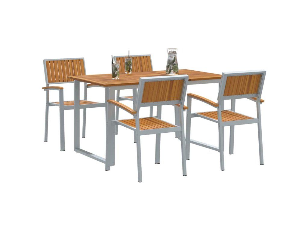 - Kvalitní materiály: Tento jídelní set je pečlivě vyroben z originálního akáciového dřeva, vybraného pro jeho skvělou texturu a přirozený šarm. Společně s odolným ocelovým rámem vytvoří set něco, co dobře vypadá a vydrží i v nepříznivém počasí, takže je ideální na celoroční venkovní jídlo.