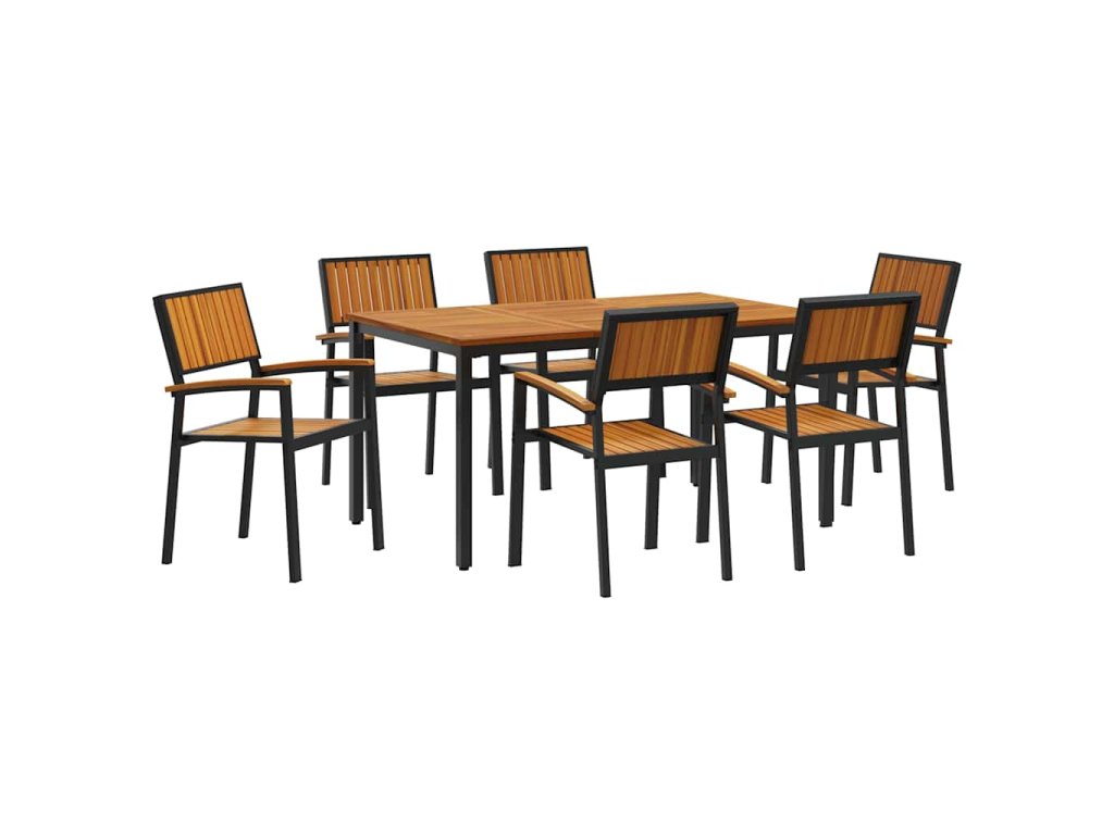 - Materiály: Super kombinace masivního akáciového dřeva a silné oceli, suitable for co vydrží. Akácie má krásnou texturu a je silný, skvěle se doplňuje se solidními ocelovými rámy – ideální do každého počasí.