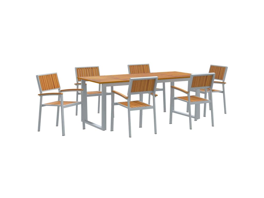 - Součásti: S pevným masivním akáciovým dřevem na opěrkách je tahle souprava zaměřená na komfort a odolnost. Ocelové nohy ji drží stabilní a bez problémů zvládá časté používání. Povrch, sezení a rám z masivního akáciového dřeva vytvářejí hezký a stylový vzhled.
