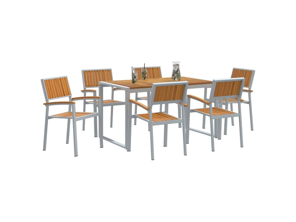 - Odolný design: Masivní akáciové dřevo a ocelový rám dělají z tohoto setu silnou a dlouhotrvající volbu. Tato kombinace dodává nejen sílu, ale i trochu rustikálního kouzla, která spojuje moderní styl a užitečnost. A materiály potřebují minimální údržbu, takže si užijete spoustu bezstarostných chvil.