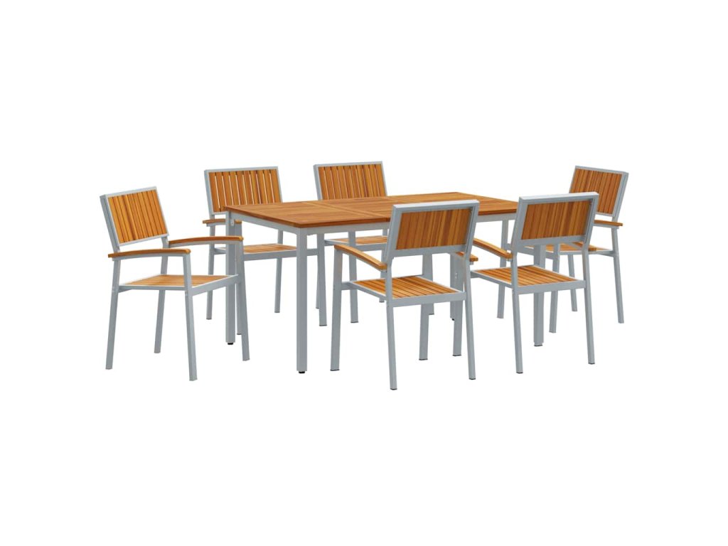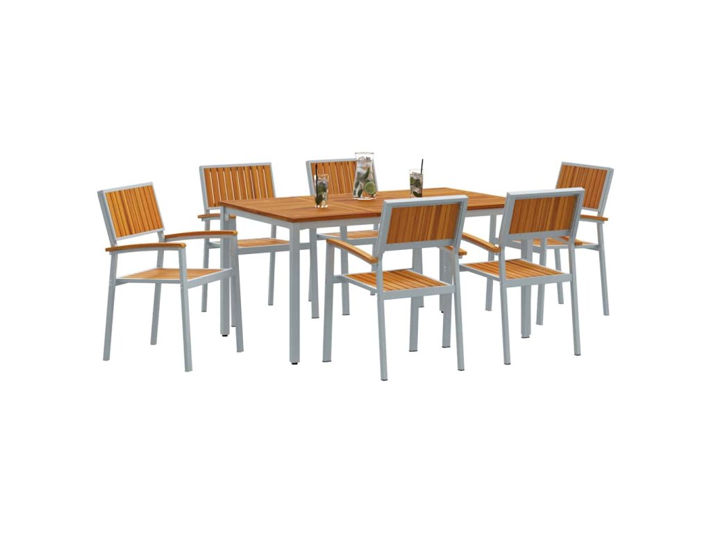 - Materiály: Super kombinace masivního akáciového dřeva a silné oceli, suitable for co vydrží. Akácie má krásnou texturu a je silný, skvěle se doplňuje se solidními ocelovými rámy – ideální do každého počasí.