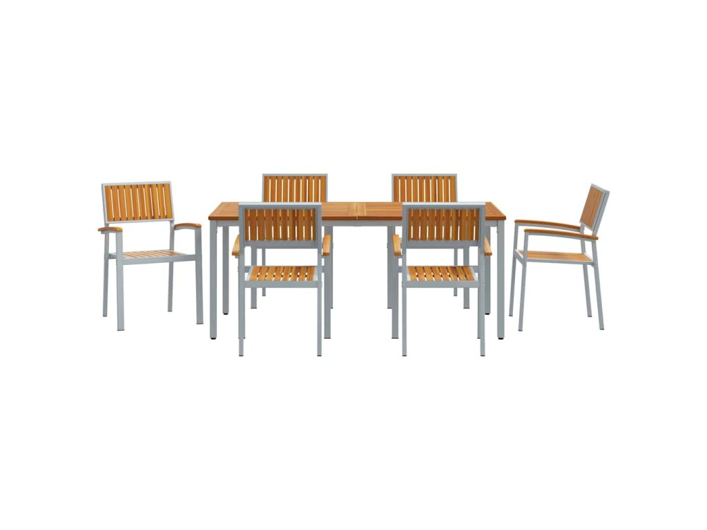 - Součásti: Set obsahuje prostorný stůl a kvalitní židle, z nichž každá má akáciové opěrky. Jsou navržené pro pohodlí, takže si tvoji hosté můžou dát nohy nahoru a užívat si pokecání.