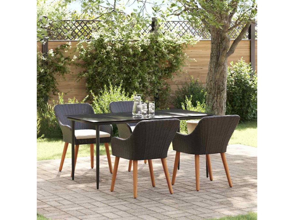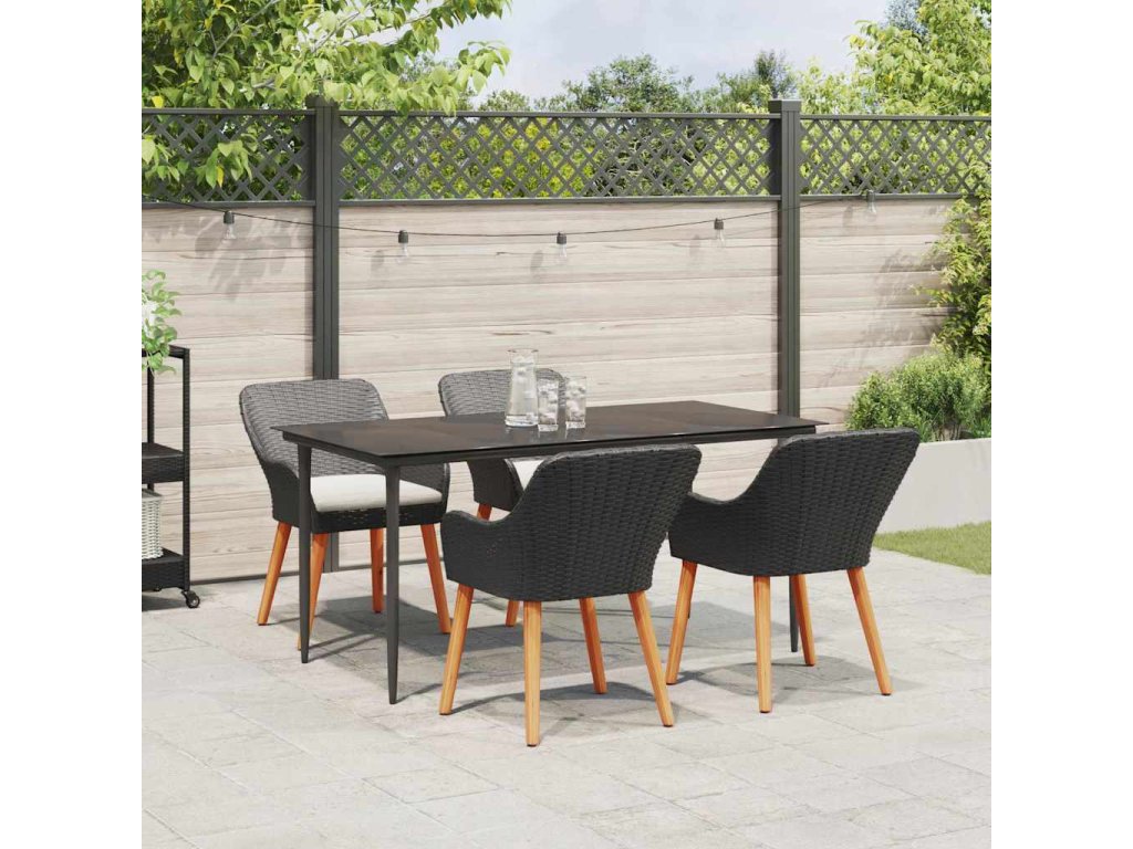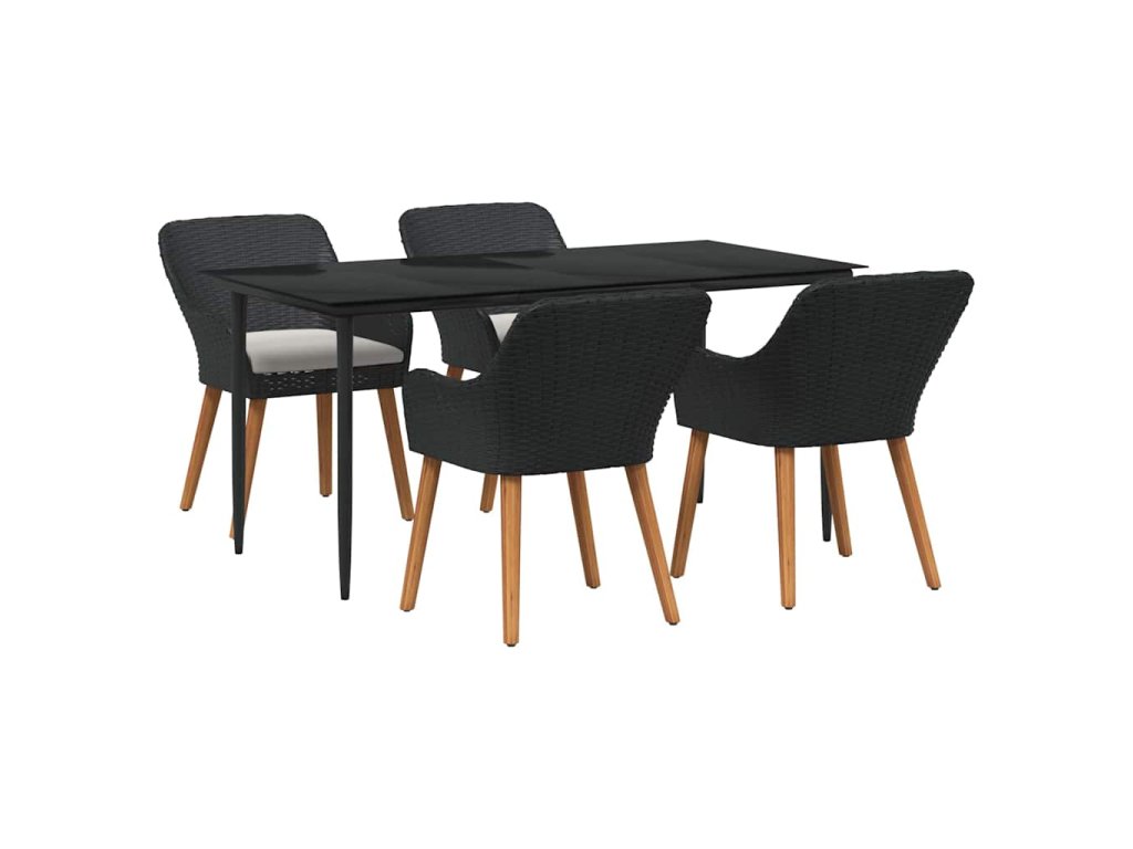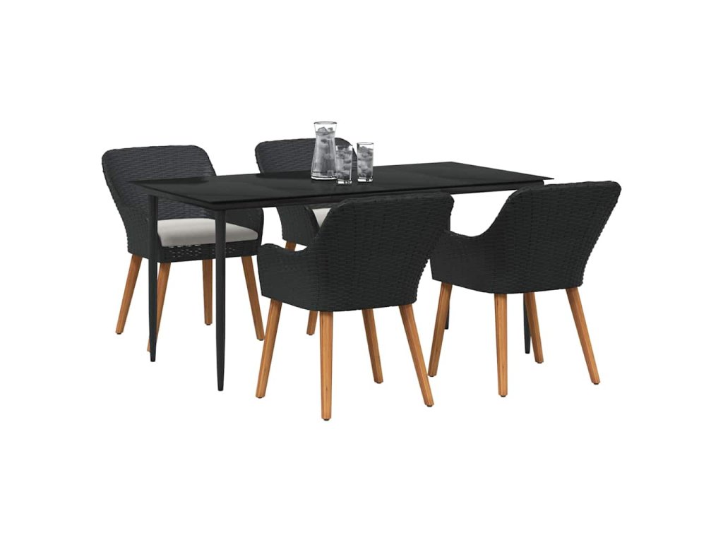 Zahradní jídelní souprava s polštářem 5 pcs Černá polyratan 3261666