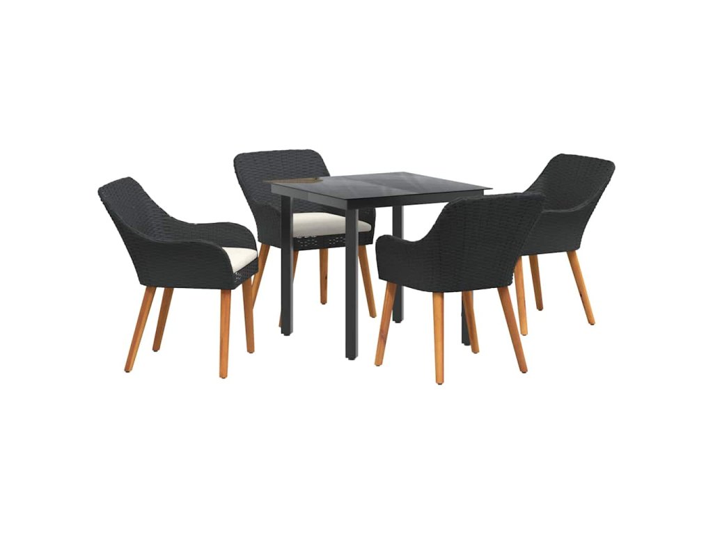 Zahradní jídelní souprava s polštářem 5 pcs Černá polyratan 3261671