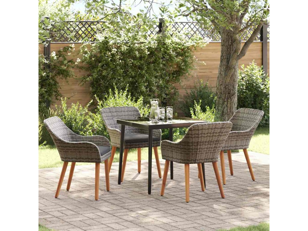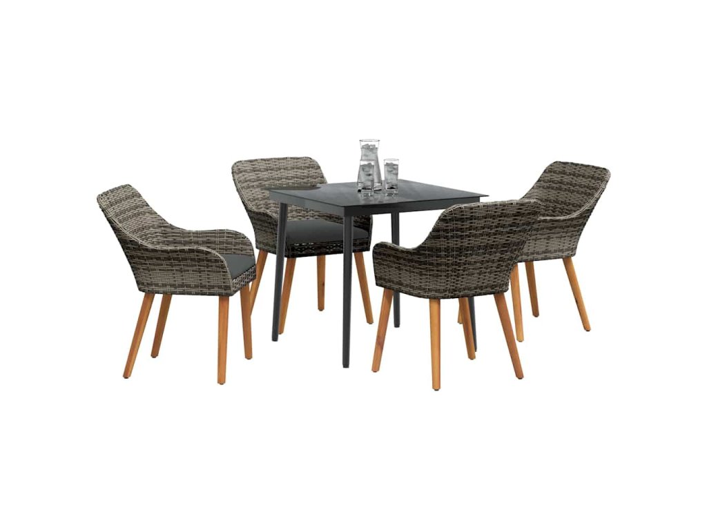 Zahradní jídelní souprava s polštářem 5 pcs Šedá polyratan 3261678