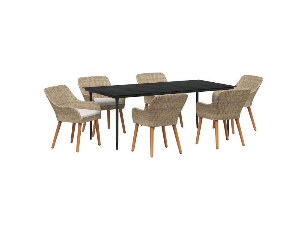 Zahradní jídelní souprava s polštářem 7 pcs Béžová polyratan 3261696