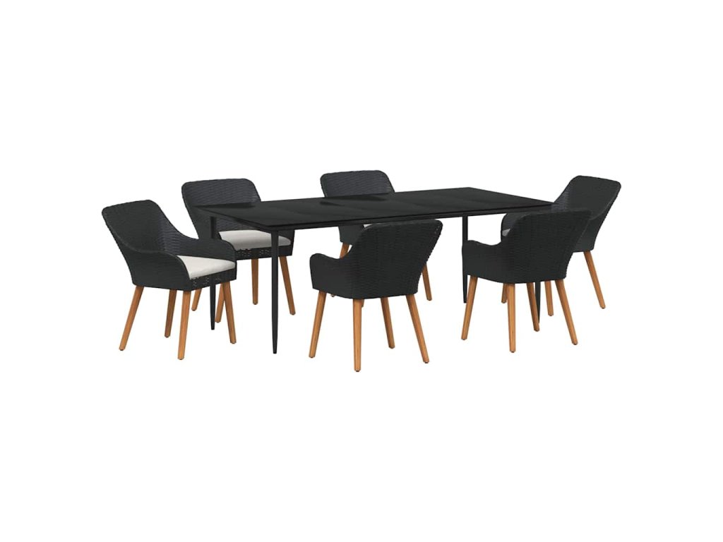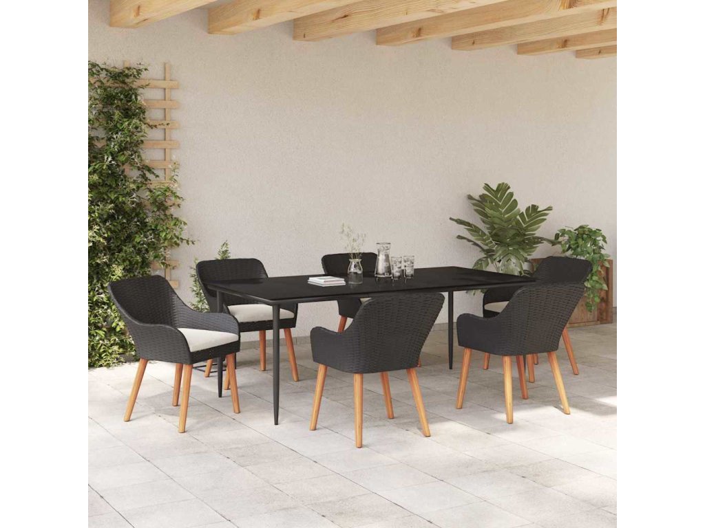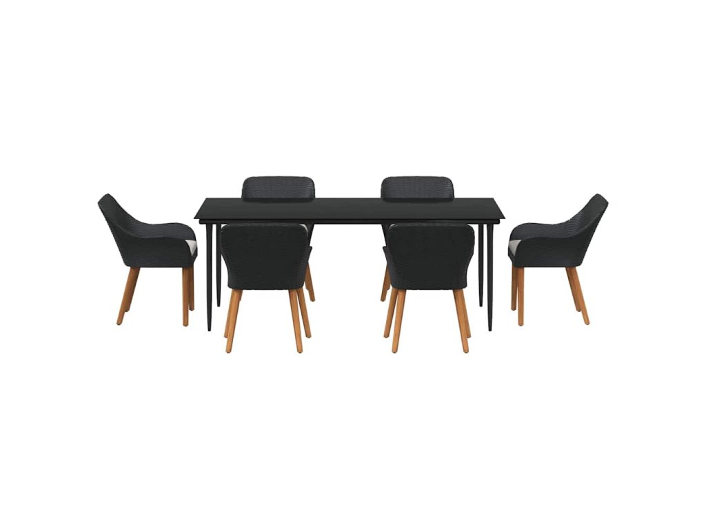 Zahradní jídelní souprava s polštářem 7 pcs Černá polyratan 3261668