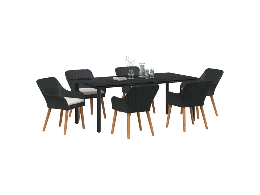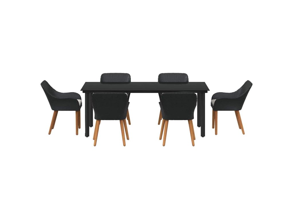 Zahradní jídelní souprava s polštářem 7 pcs Černá polyratan 3261675