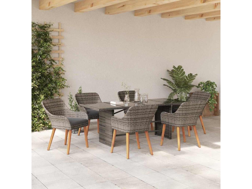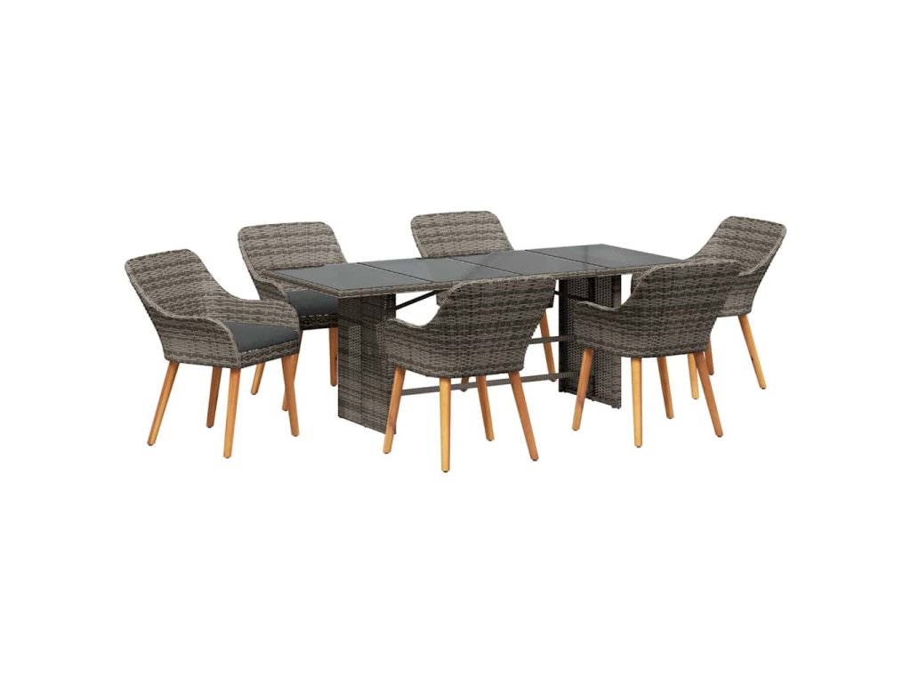 Zahradní jídelní souprava s polštářem 7 pcs Šedá polyratan 3261625