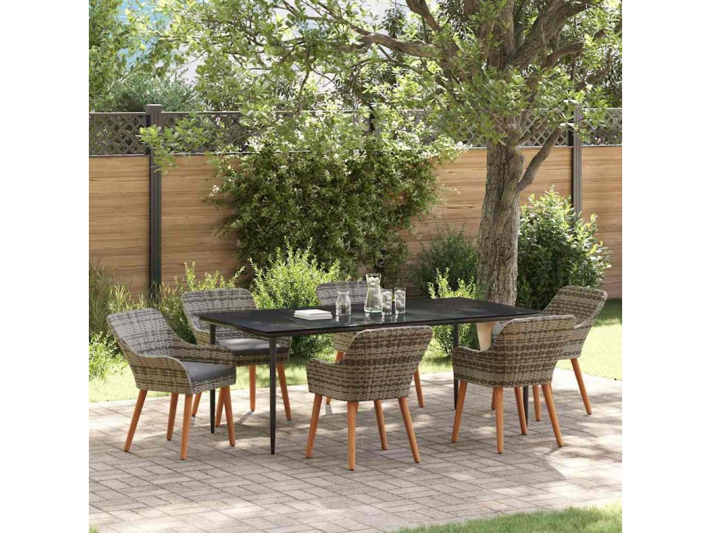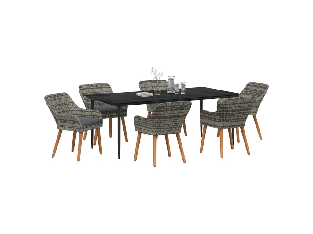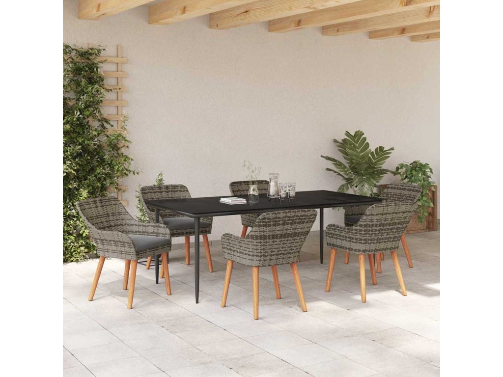 Zahradní jídelní souprava s polštářem 7 pcs Šedá polyratan 3261682