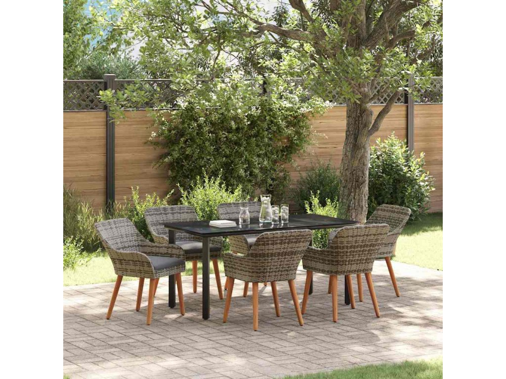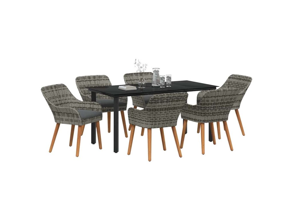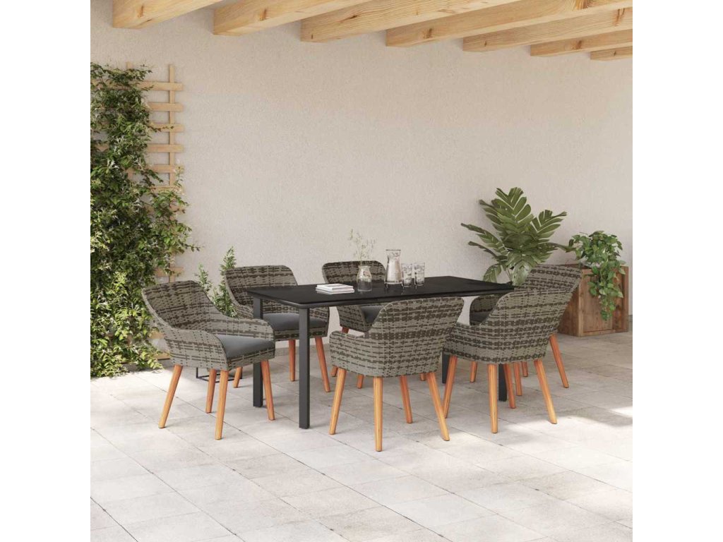 Zahradní jídelní souprava s polštářem 7 pcs Šedá polyratan 3261688