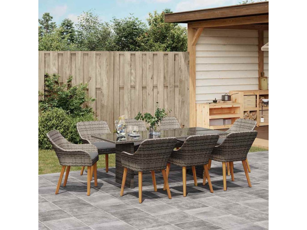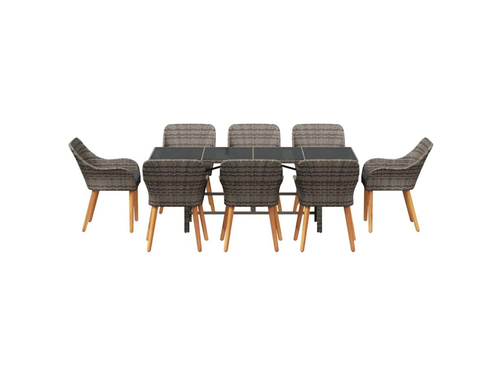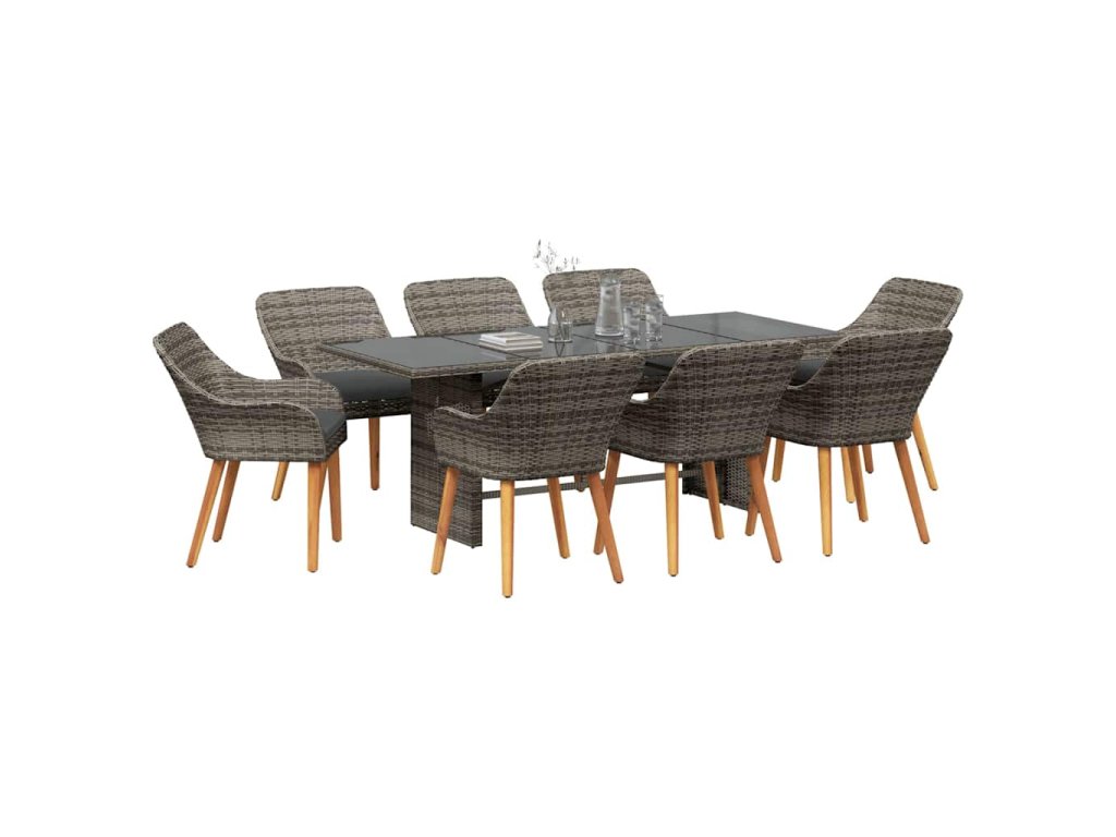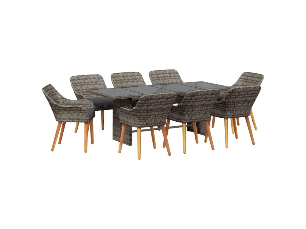 Zahradní jídelní souprava s polštářem 9 pcs Šedá polyratan 3261626