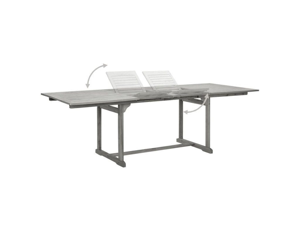 Tento zahradní stůl je vyrobený z masivního akáciového dřeva, tropického tvrdého dřeva, které je odolné vůči povětrnostním vlivům a má dlouhou životnost. Tento zahradní stůl je konstruován tak, aby se dal prodloužit, když potřebujete více místa.