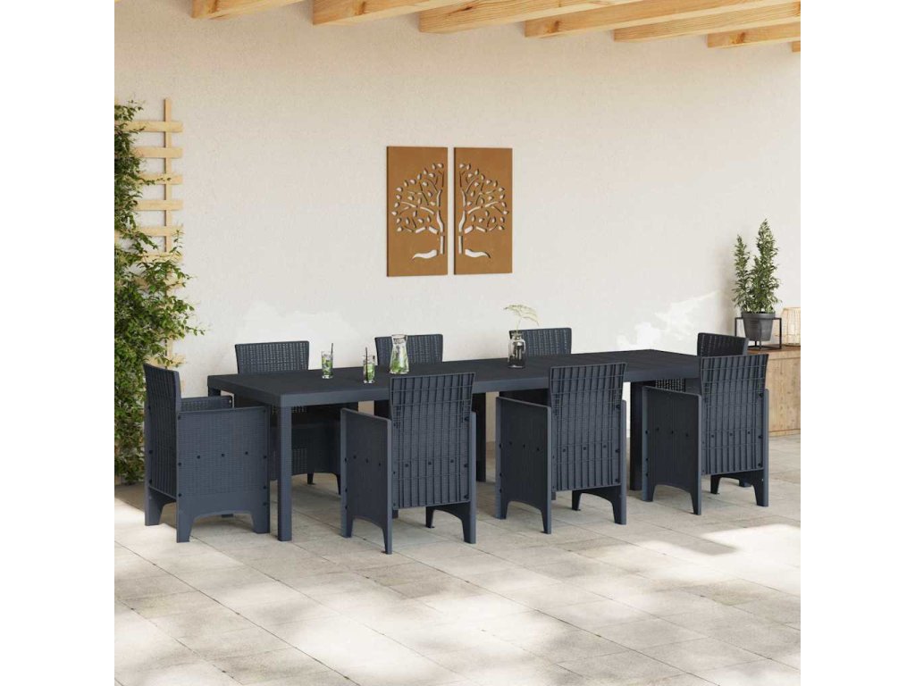 Odolná kombinace: Pevný ocelový rám se skvělou polyratanovou vrstvou, je to fakt výjimečné a odolné. Kombinace materiálů zajišťuje dlouhou životnost a moderní vzhled, perfektní pro jakékoliv klima. Design bez elektriky: I když nemá elektrické části, jeho robustní design funguje bez zbytečných gadgetů. Je to čistý, jednoduchý styl, který skvěle doplní vaši venkovní dekoraci. Pohodlí využití: Skvělý design pro dlouhou životnost, má pohodlný tvar a prostorný stůl pro různé jídelní zážitky. Jeho styl je moderní a hodí se skoro do každého venkovního prostředí. Určení použití: Perfektní pro venkovní místa jako zahrady nebo terasy. Styl a síla se skvěle doplňují, ideální na setkání s přáteli nebo rodinné akce. Péče a údržba: Chcete-li zajistit dlouhou životnost stolu, používejte kryty, když ho zrovna nepoužíváte. Kryty chrání stůl před počasím a drží ho v super stavu.- Barva: Antracit