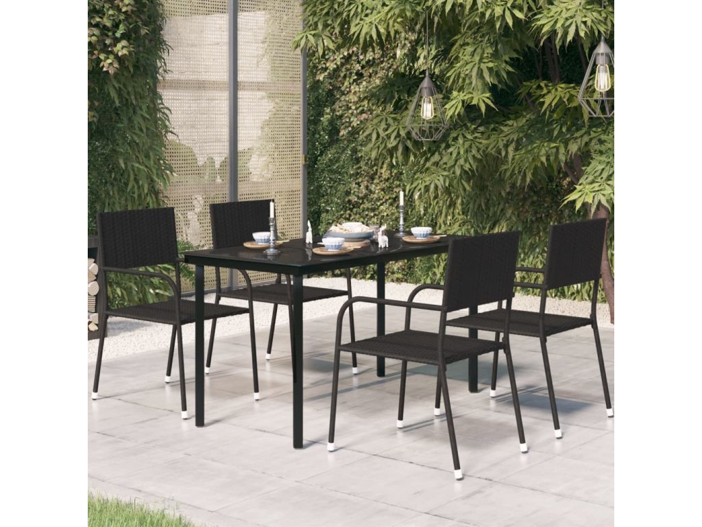 Zahradní jídelní stůl černý 140 x 70 x 74 cm ocel a sklo 318747