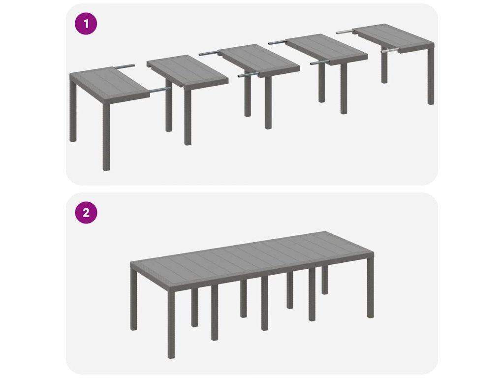 Odolná kombinace: Pevný ocelový rám se skvělou polyratanovou vrstvou, je to fakt výjimečné a odolné. Kombinace materiálů zajišťuje dlouhou životnost a moderní vzhled, perfektní pro jakékoliv klima. Design bez elektriky: I když nemá elektrické části, jeho robustní design funguje bez zbytečných gadgetů. Je to čistý, jednoduchý styl, který skvěle doplní vaši venkovní dekoraci. Pohodlí využití: Skvělý design pro dlouhou životnost, má pohodlný tvar a prostorný stůl pro různé jídelní zážitky. Jeho styl je moderní a hodí se skoro do každého venkovního prostředí. Určení použití: Perfektní pro venkovní místa jako zahrady nebo terasy. Styl a síla se skvěle doplňují, ideální na setkání s přáteli nebo rodinné akce. Péče a údržba: Chcete-li zajistit dlouhou životnost stolu, používejte kryty, když ho zrovna nepoužíváte. Kryty chrání stůl před počasím a drží ho v super stavu.- Barva: Světle šedá