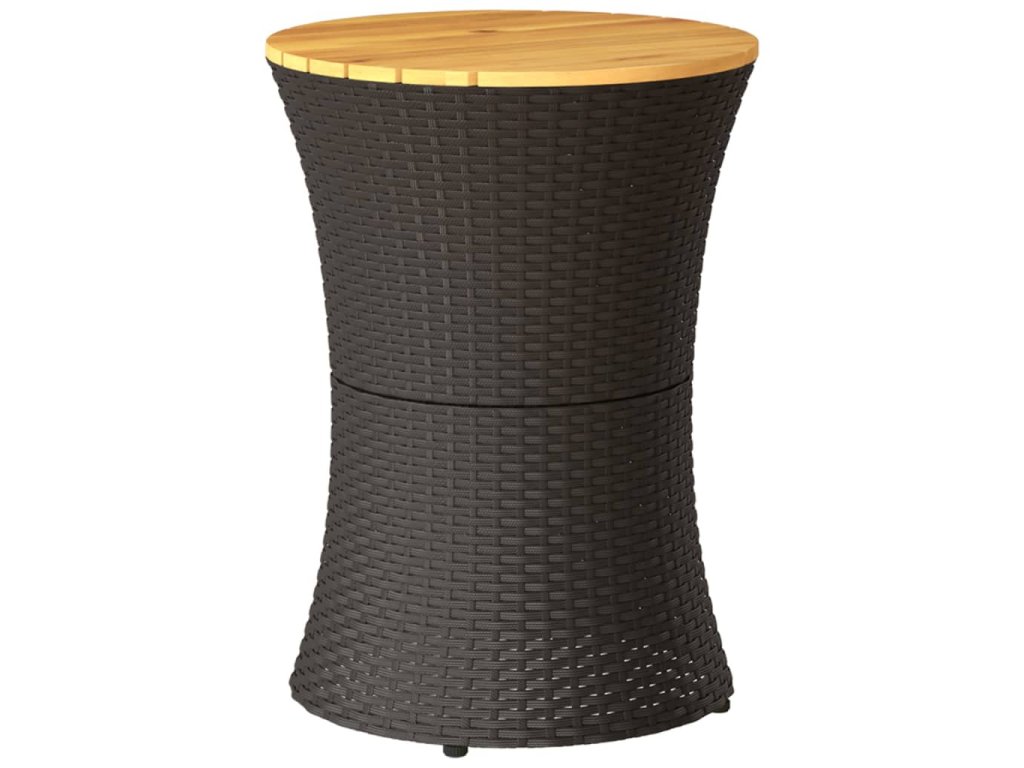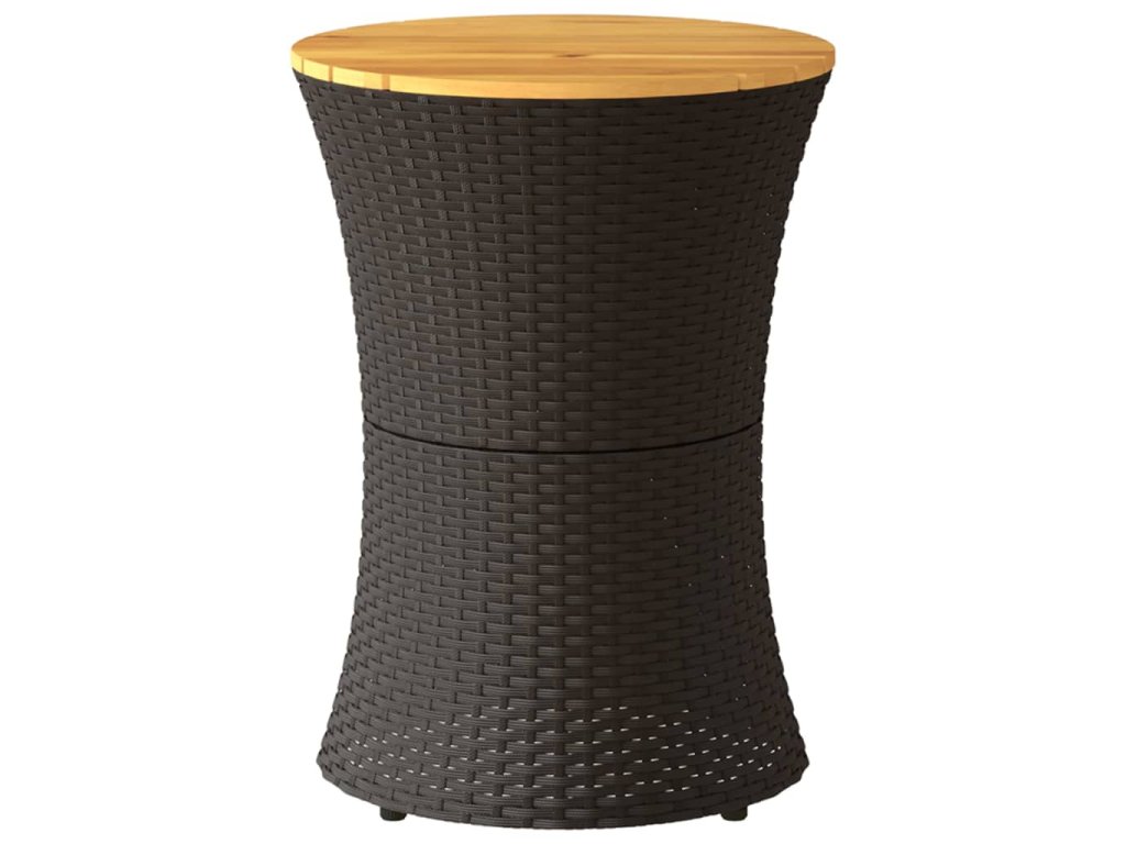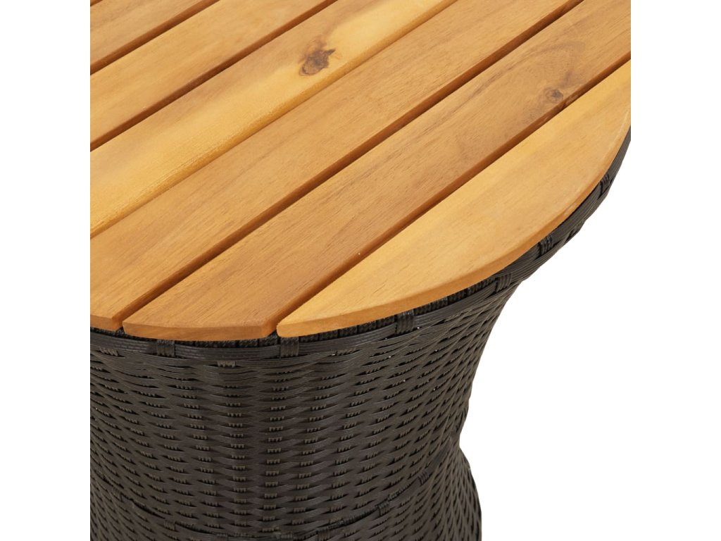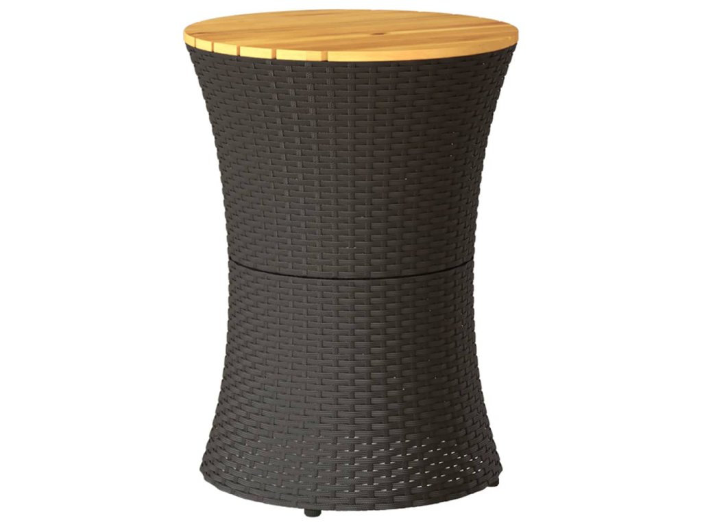 Zahradní odkládací stolek tvar bubnu černý polyratan a masiv 368296
