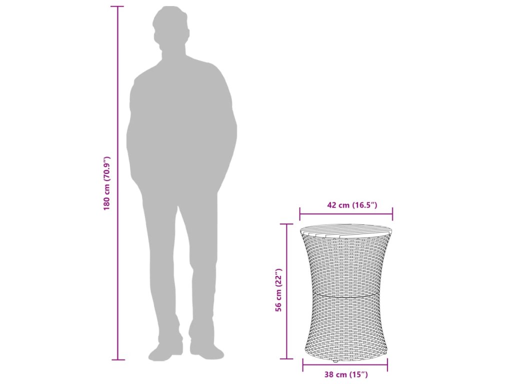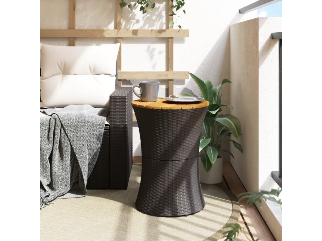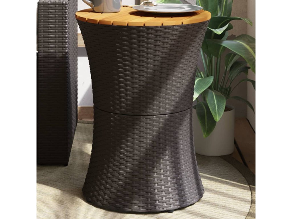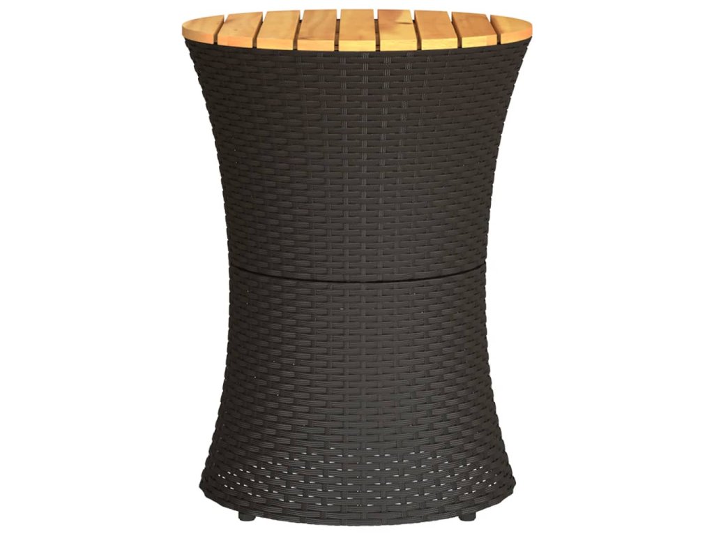 Zahradní odkládací stolek tvar bubnu černý polyratan a masiv 368296