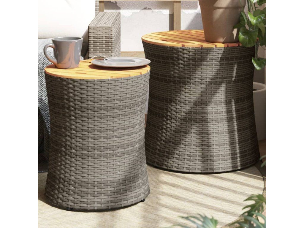 Zahradní odkládací stolky 2 ks dřevěná deska šedé polyratan 366289