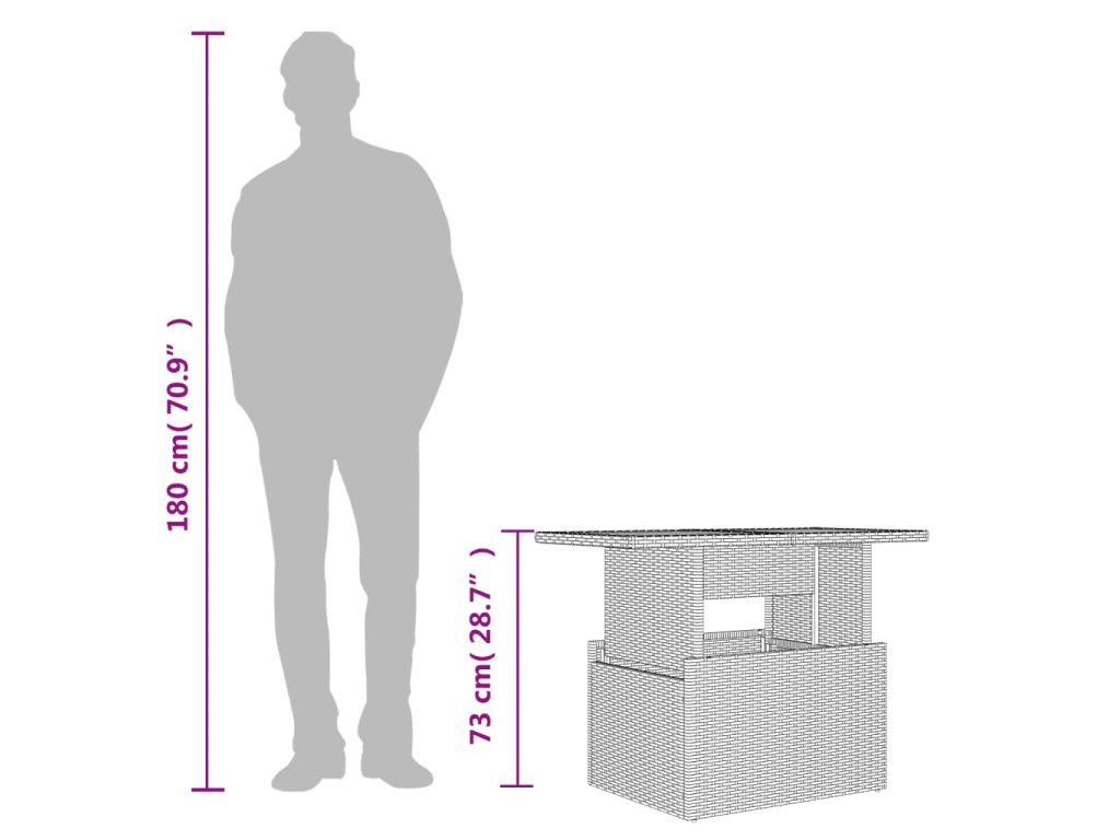 - Nastavitelná deska stolu: Stolní desku lze zvednout tak, aby stůl byl vyšší, takže jej můžete přeměnit z konferenčního stolku na jídelní. Skvěle se hodí pro návštěvy nebo pro stolování venku.