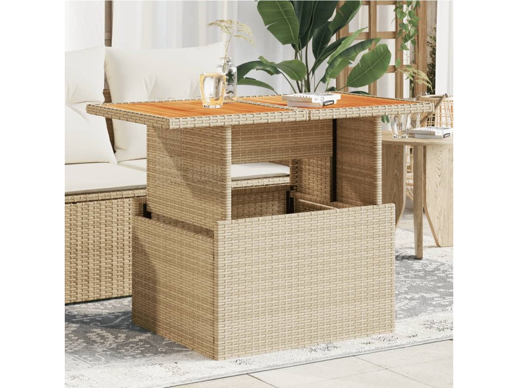 Zahradní stolek béžový 100 x 55 x 73 cm polyratan a akácie 366065