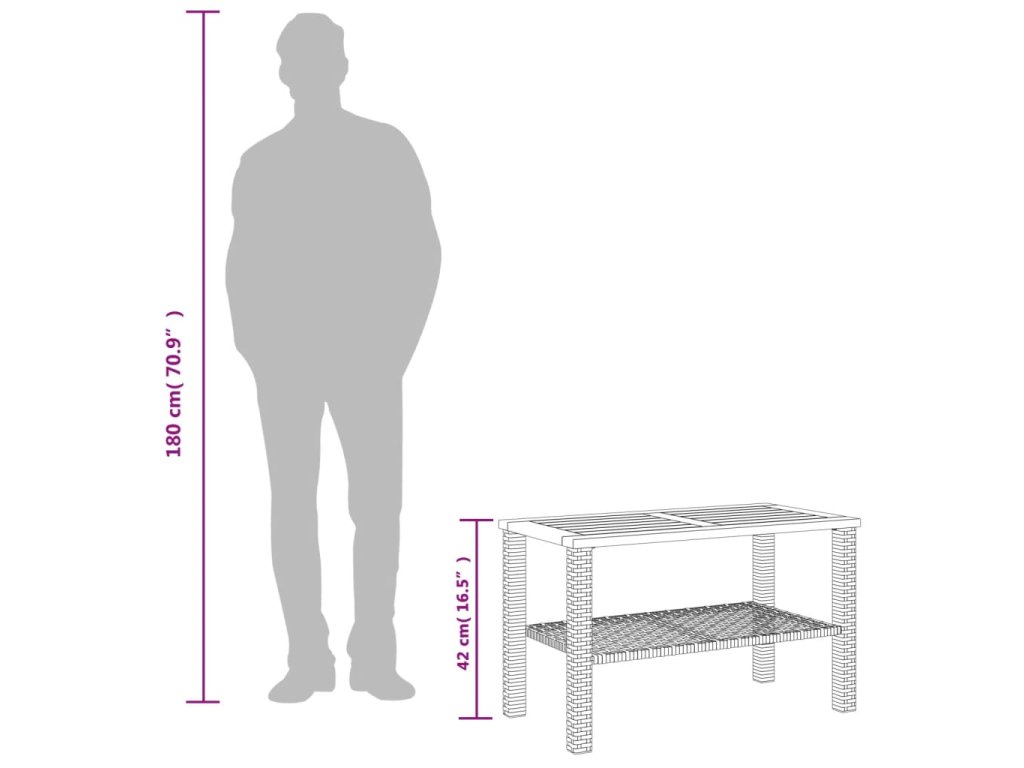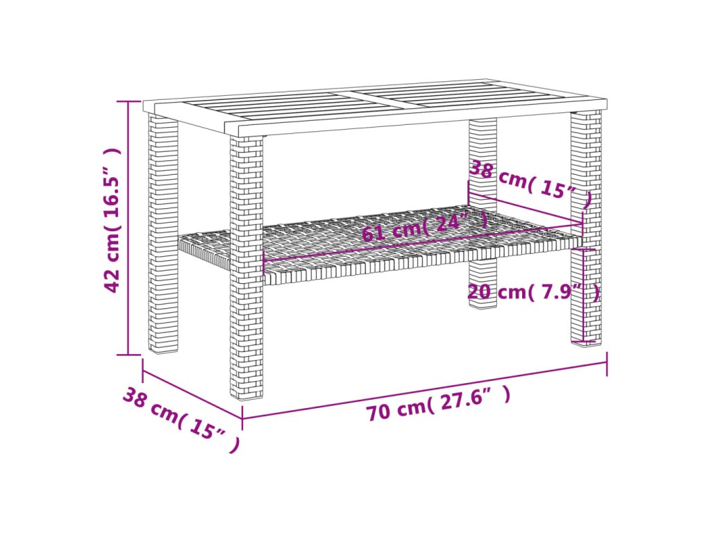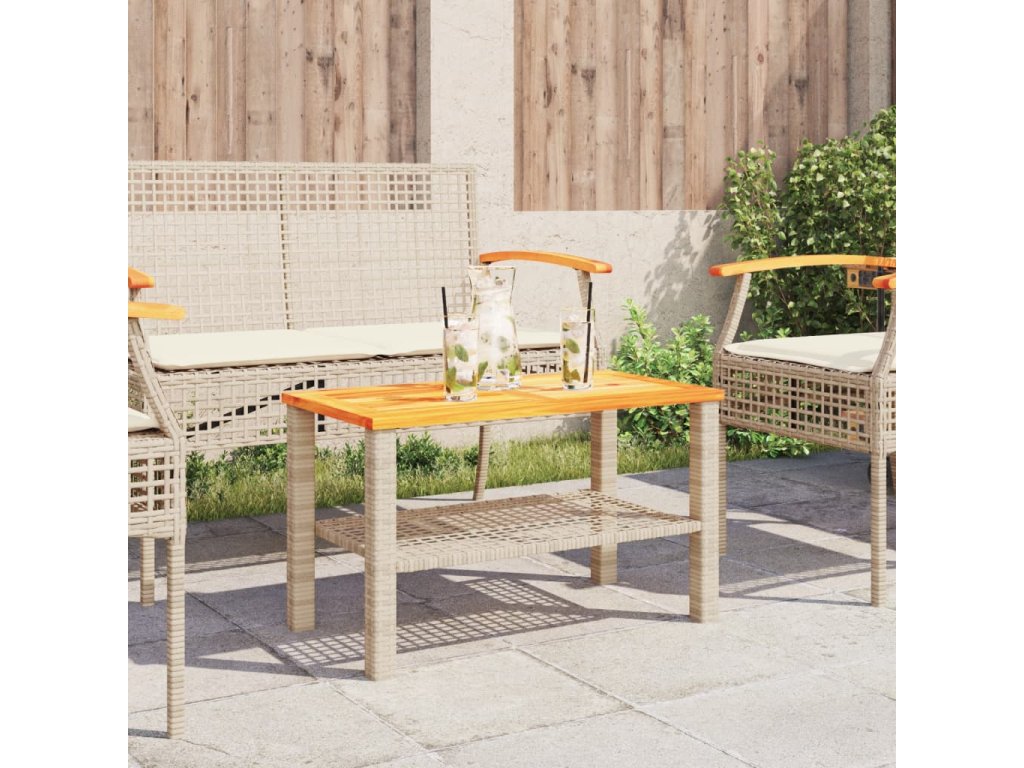 Zahradní stolek béžový 70 x 38 x 42 cm polyratan akáciové dřevo 366272