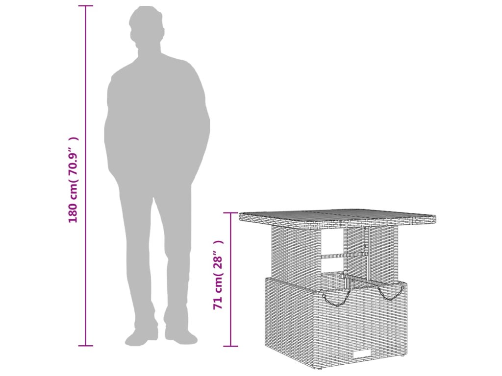 - Rozměry: 80 x 80 x 40/71 cm (D x Š x V)