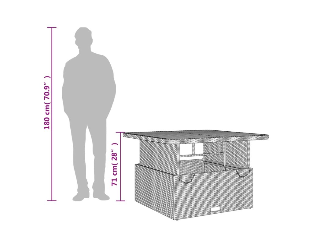 - Nastavitelná deska stolu: Stolní desku lze zvednout tak, aby stůl byl vyšší, takže jej můžete přeměnit z konferenčního stolku na jídelní. Skvěle se hodí pro návštěvy nebo pro stolování venku.