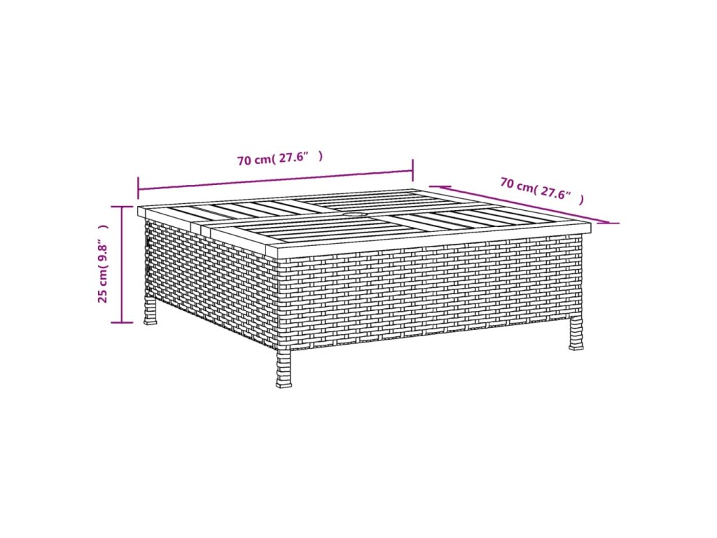 Zahradní stolek černý 70 x 70 x 25 cm ratan a akáciové dřevo 3281629