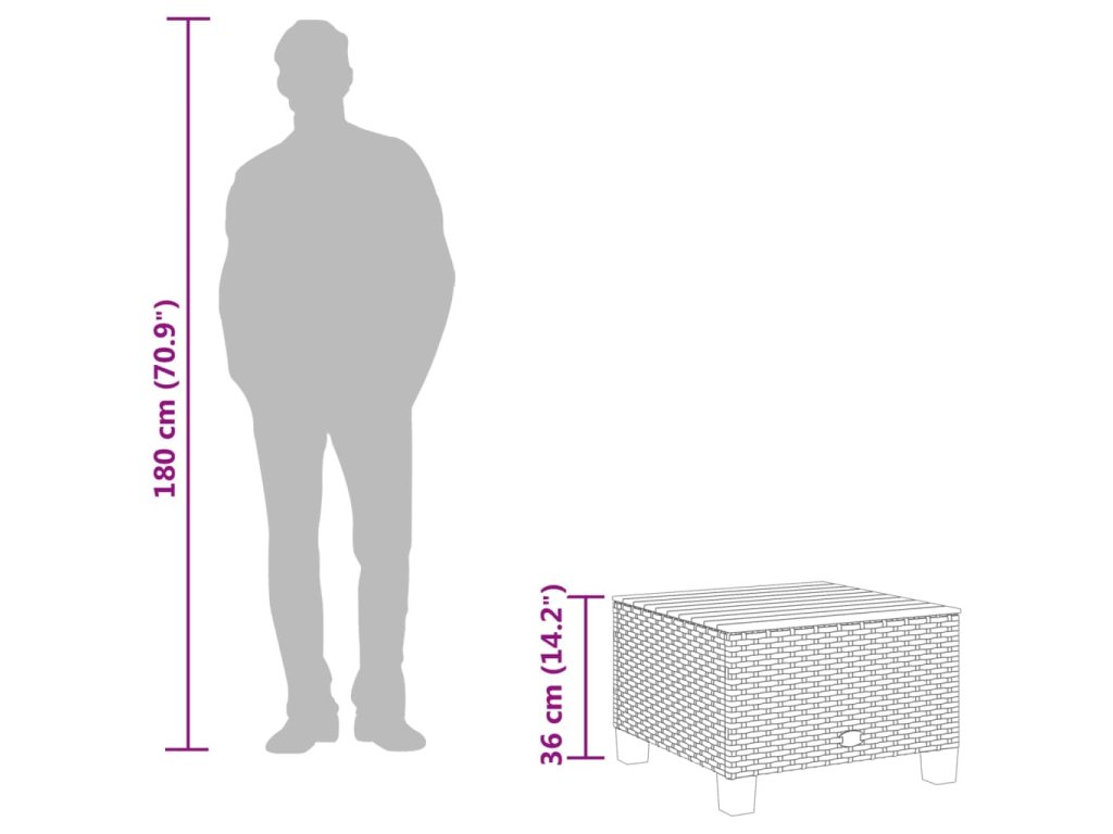 Zahradní stolek šedý 55 x 55 x 36 cm polyratan akáciové dřevo 365909