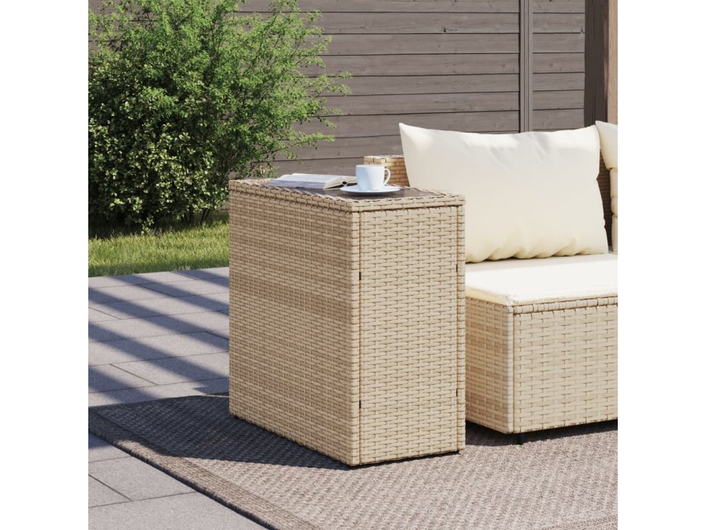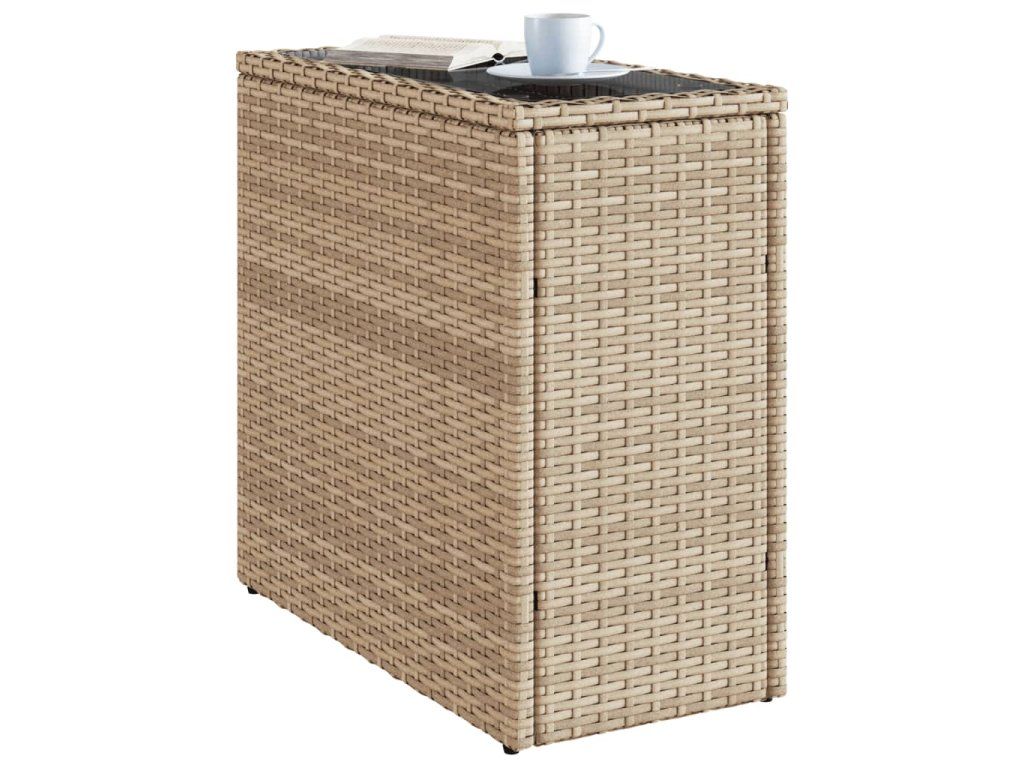 Zahradní stolek skleněná deska béžový 58x27,5x55 cm polyratan 366071