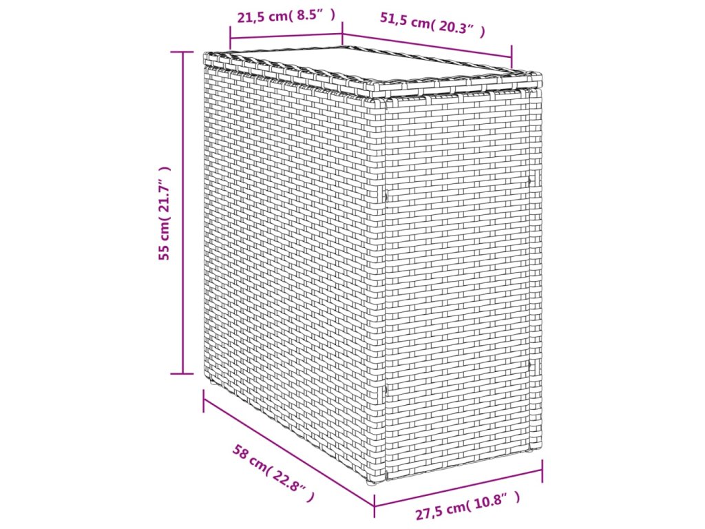 - Rozměry: 58 x 27,5 x 55 cm (D x Š x V)