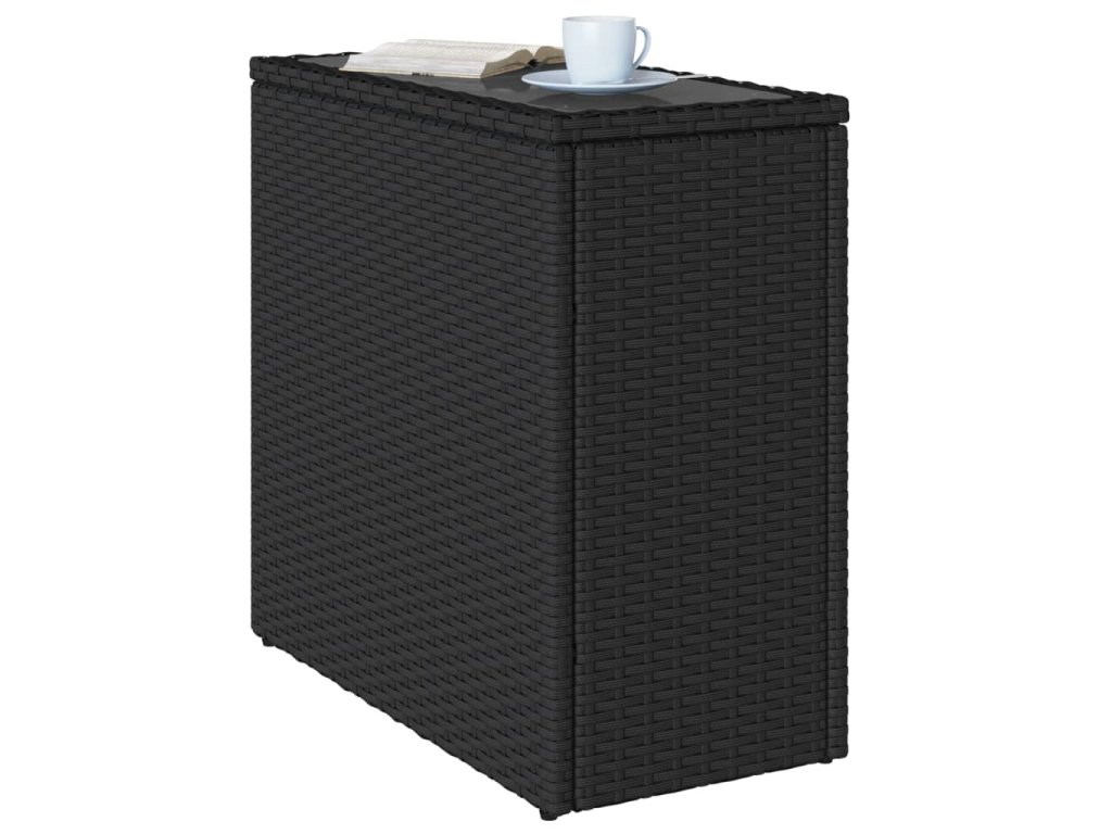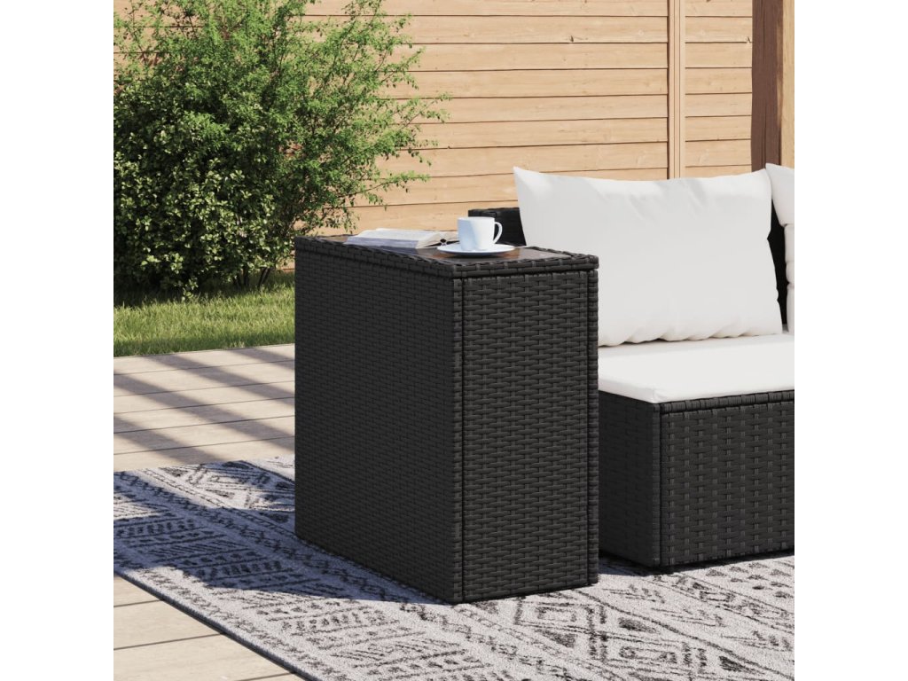 Zahradní stolek skleněná deska černý 58x27,5x55 cm polyratan 365982
