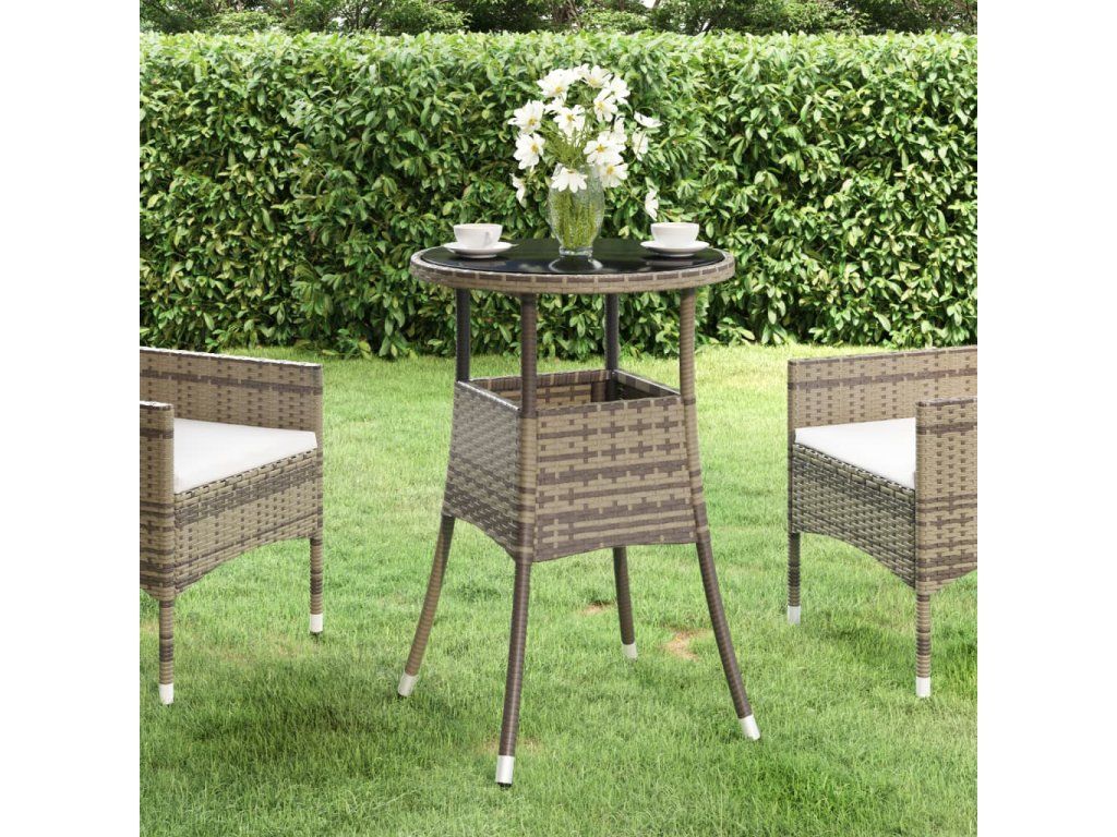 Zahradní stůl Ø 60 x 75 cm tvrzené sklo a polyratan šedý 310600