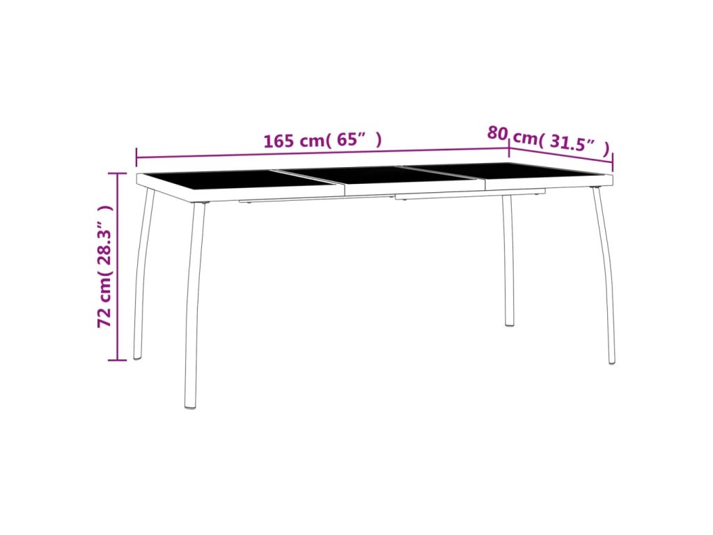 - Stabilní rám: Ocelový rám s práškovým nástřikem a e-coatingem zajišťuje pevnost a stabilitu zahradního stolu.