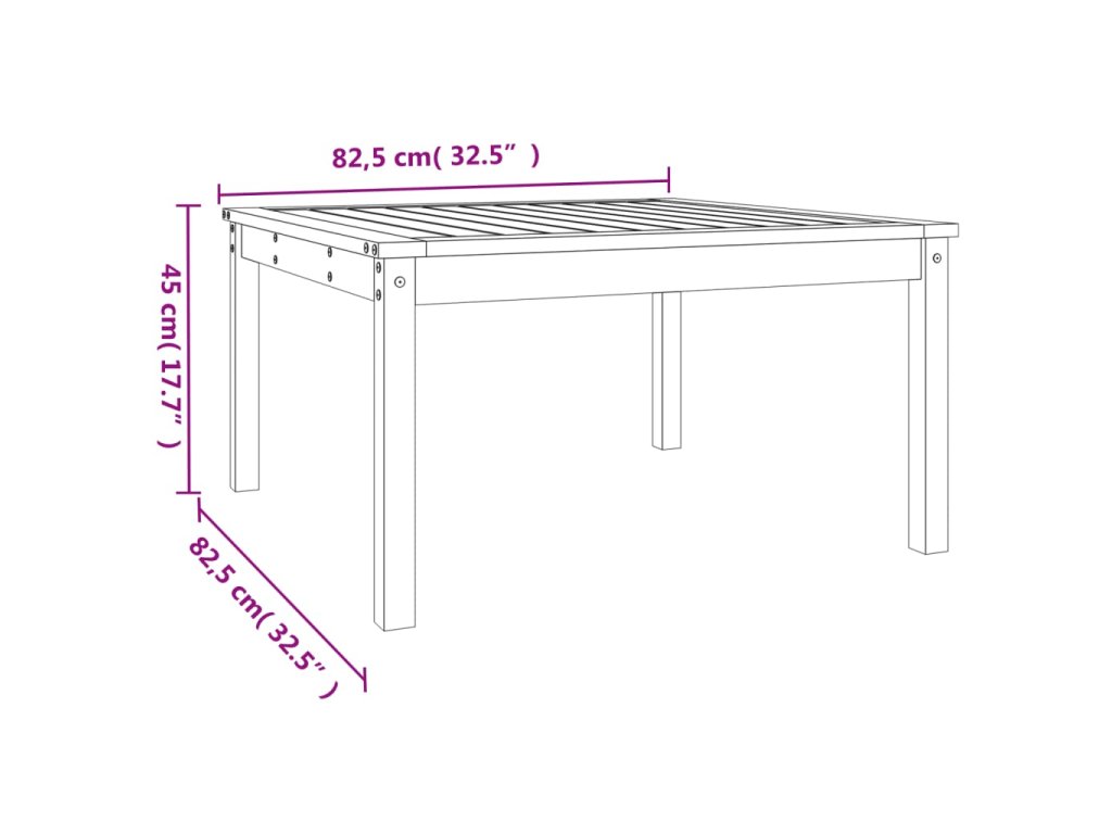 Zahradní stůl bílý 82,5 x 82,5 x 45 cm masivní borové dřevo 824121