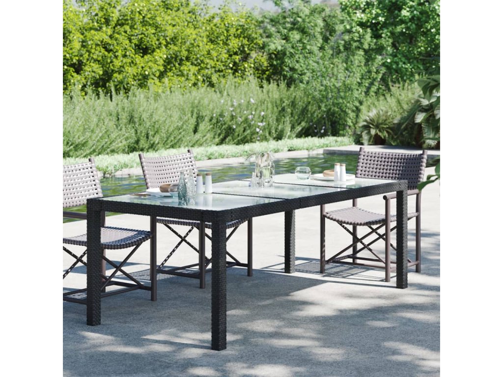 Zahradní stůl černý 190 x 90 x 75 cm tvrzené sklo a polyratan 316712